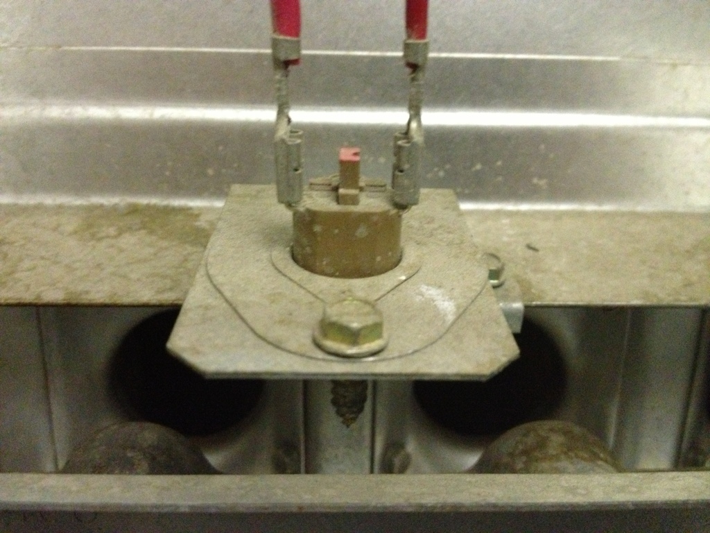 This is a picture of a flame rollout safety switch it will trip at a set temperature. The temperature set point of the rollout is designed to open when the flame is coming out the front of the burners