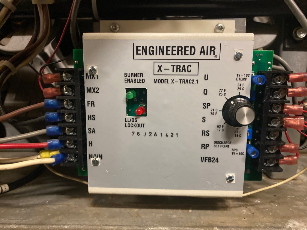 When temperature reach -22f/-30c MUA would not be able to keep up and would be blowing cold air. So I checked MX1 & MX2 and found 14 VDC. Warm and cool sensor and this voltage does not change. Disconnect MX1 and unit goes to high fire so this proved modulating valve is working properly.